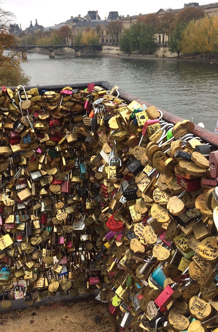 We left Laduree and walked along the river passing so many beautiful sites, we found a Georgian 1880 hundreds water fountain that is known in Paris as the 'fountain of lovers'. This fountain is famous for couples throwing flowers into the water and declaring their love for one another. Along our walk, we also spotted the Notre Dam, it is a huge cathedral that is famous for starring in the Disney film 'The Hunch Back Of Notre Dam'. And also something to mention that we found is the Parisian 'Love-lock Bridge', this bridge is famous for couples writing special messages on padlocks, attaching them to the bridge and throwing the key into the river. It's a beautiful place, and the atmosphere is so lovely, I would say it's defiantly somewhere to visit in Paris. To end our evening in Paris, we went to the top of the Eiffel Tower. From a distance the tower it's self doesn't actually seem that tall, but once your standing under it, its breathtaking.